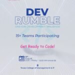 Texas College of Management and IT proudly announces the successful completion of DEV RUMBLE 2025, a one-day development challenge that brought together 24 dynamic teams of young innovators and tech enthusiasts.